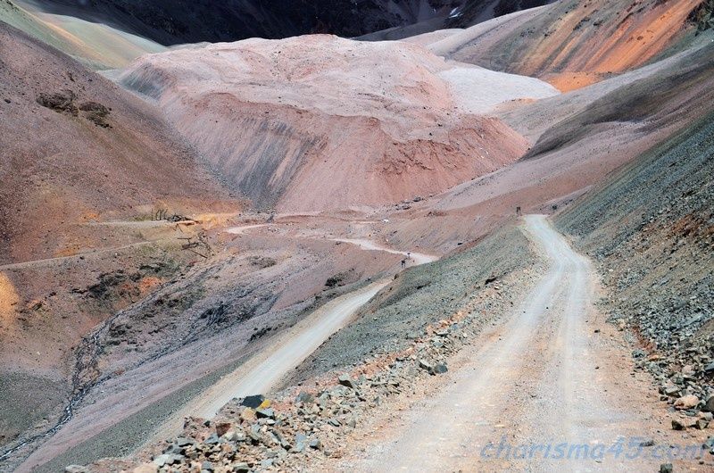 Il est 14h00 lorsque nous stoppons sur un bord de piste plus large pour déjeuner. Nous sommes encore à 4200 mètres mais nous ne restons pas longtemps. Juste le temps de grignoter un sandwich et nous repartons. Erick est parti devant nous cette fois.