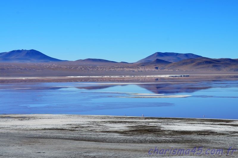 ...... et de nous rendre à la laguna Colorada. Laguna Colorada qui nous a plutôt déçu. D’abord nous n’y voyons pas cette couleur rouge annoncée et il n’y a pratiquement pas de flamands. Mais c’est quand même superbe.