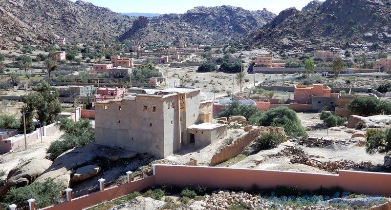 Je m’arrête ensuite chez Neima, N29°42’43.29’’ W008°59’12.23’’ pour prendre des renseignements. C’est chez elle que sont stationnés tous ces camping-cars. (Entrée du stationnement N29°.42’50.87’’ W008°59’18.62). Il y a chez elle un endroit pour vider les cassettes et il est possible de prendre de l’eau. Ce lieu de bivouac est extra. Voilà un autre endroit où je pourrai me sentir bien pour passer l’hiver même si ce n’est pas évident lorsque l’on est équipé de wc nautiques, bidon Fiama obligatoire. Il ne manque que la piscine, mais il suffirait apparemment d’aller prendre une conso à l’hôtel Saint Antoine à quelques centaines de mètres pour pouvoir profiter de la leur. Tafraoute est vraiment une ville très agréable. C’est certainement pour cela qu’il y a autant de camping-caristes.